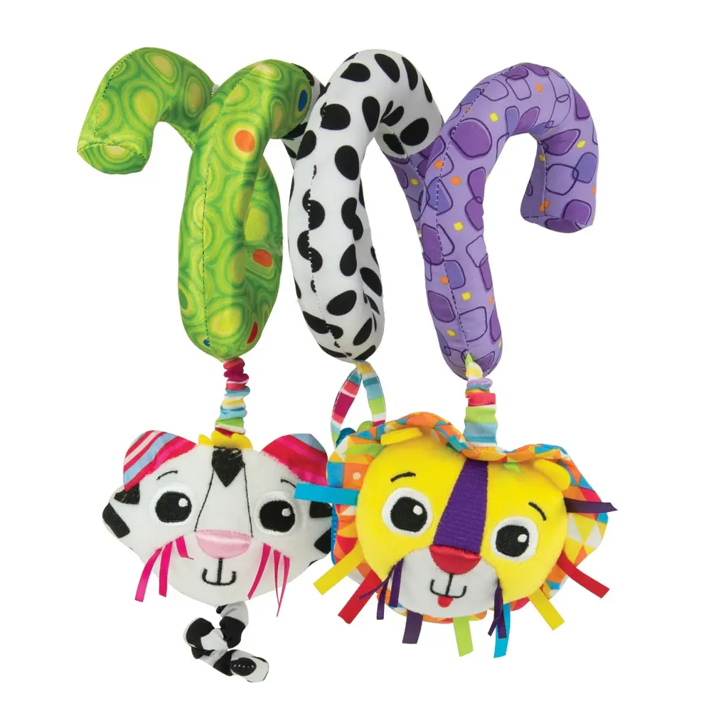 Spiral mobile Flot spiral til klapvogn, barnevognen eller børnesengen. Et aktivitets legetøj der med sine flotte og klare farver og stærke mønstre stimulere og udvikle barnets sanser. Spiralen har forskellige stofoverflader som er sjove at røre ved for ba