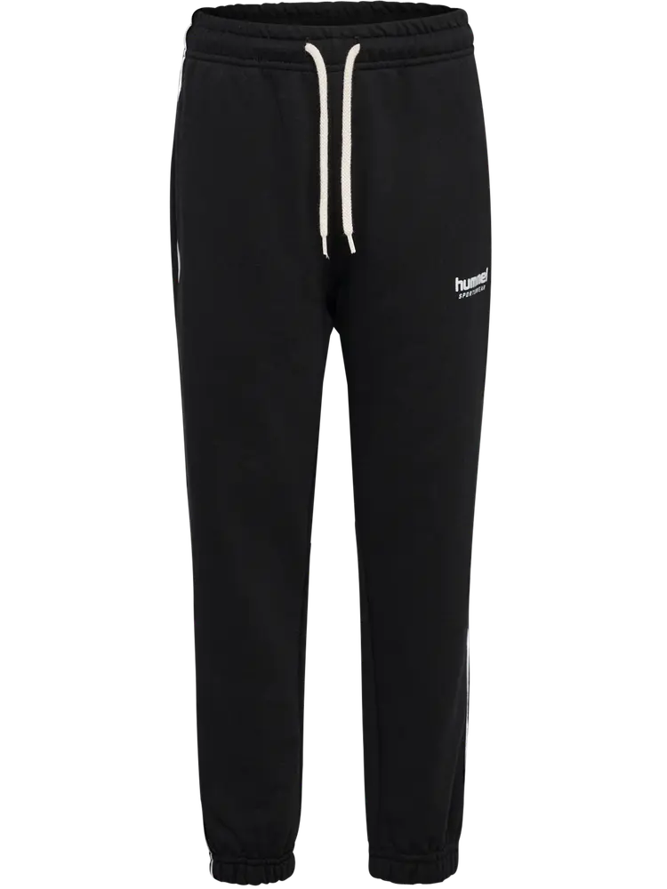 hmlJR loose sweatpant piping er designet til maksimal komfort med en løs pasform og justerbar talje. De er fremstillet af en blød blanding af økologisk bomuld og genanvendt polyester med børstet sweatstof. Vandbaseret print og sidelommer fuldender det pra