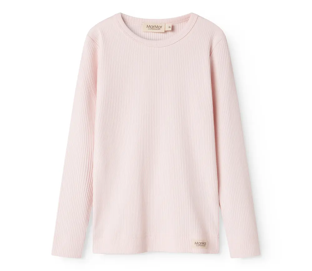 Denne enkle og alsidige langærmede T-shirt er fremstillet i ribstrikket modal med elastan, hvilket giver en strækbar og behagelig pasform. Den er blød mod huden og holder både form og farve – perfekt til hverdagsbrug.
