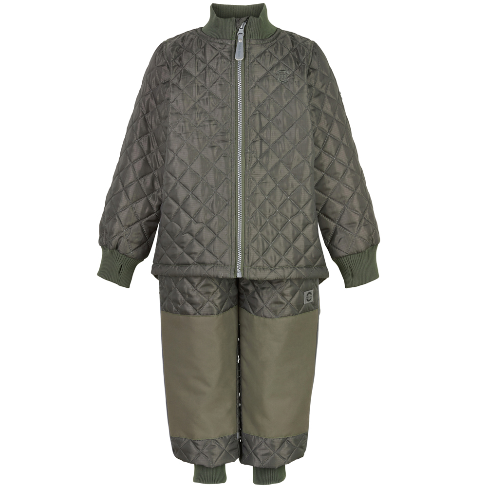 Termosæt (10 år/140 cm) – BIONIC FINISH® ECO – fluorfri coating – Vandafvisende – Vindtæt – Åndbar – Smudsafvisende – TASLON forstærkning på både knæ og numse/50.000 gnidninger – Reflekser – Tommelfingerhul Dusty Olive