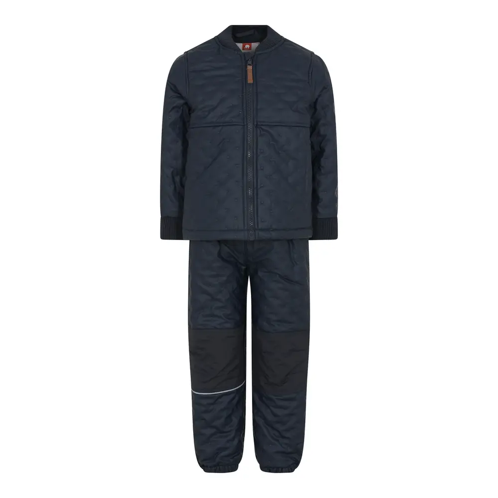 Termotøj med PU-belægning, som gør termotøjet vandtæt. Derudover er sættet foret indvendigt. Ekstra forstærket på knæ og bagpå på bukserne. Bukserne har desuden elastik i talje og ved ankler. Jakken har ribkant ved hals og håndled samt lynlåslukning. CeLa