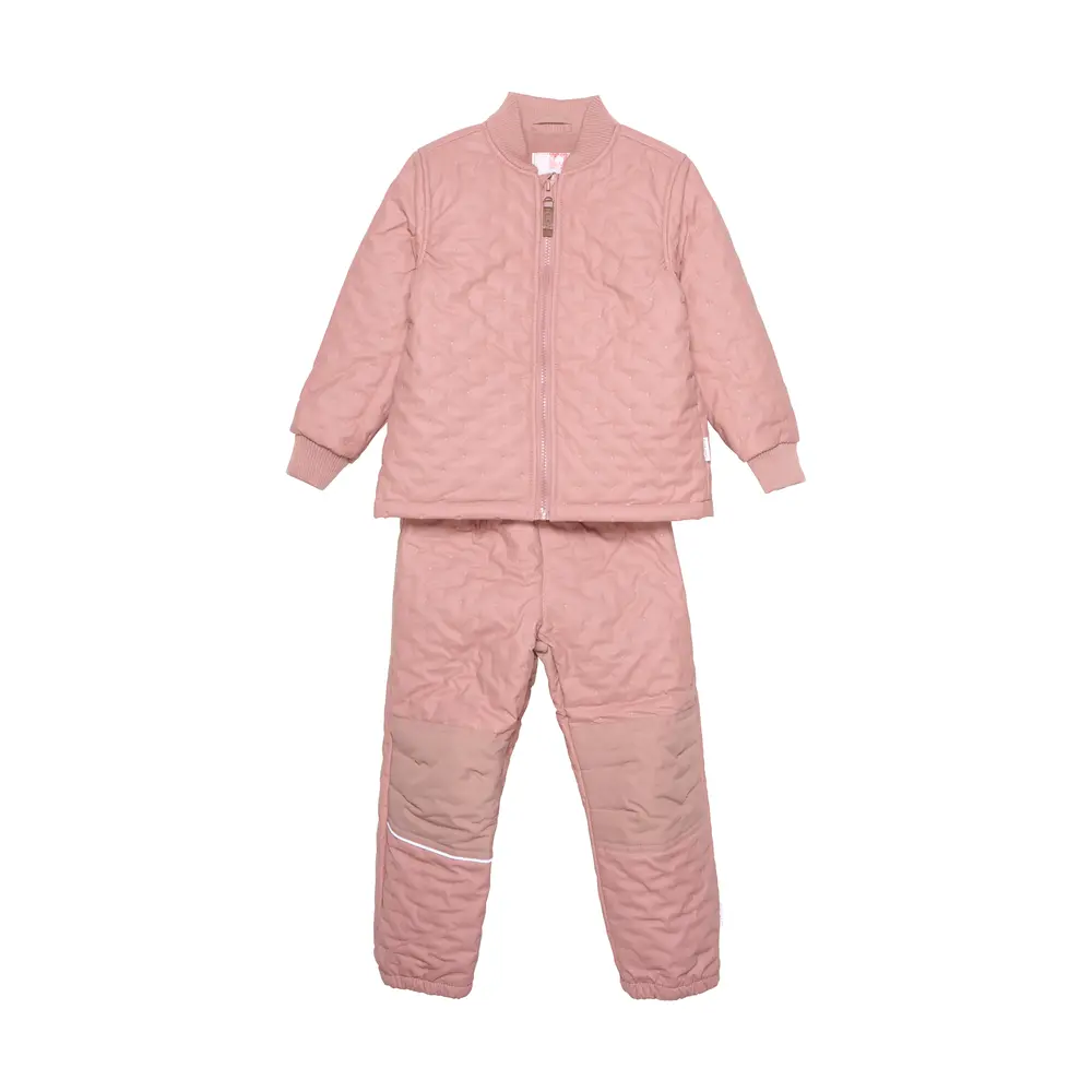 Termotøj med PU-belægning, som gør termotøjet vandtæt. Derudover er sættet foret indvendigt. Ekstra forstærket på knæ og bagpå på bukserne. Bukserne har desuden elastik i talje og ved ankler. Jakken har ribkant ved hals og håndled samt lynlåslukning. CeLa