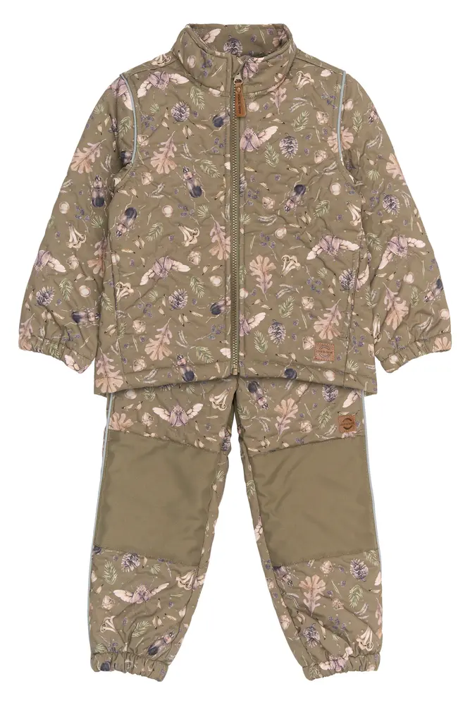 Thermal+ sæt fra mikk-line med et charmerende printmønster (AOP). Dette isolerende termosæt har vandtæt stof, der er imprægneret med BIONIC-FINISH® ECO, som er uden PFAS/flourstoffer. Sømmene er dog ikke vandtætte, men åndbarheden er god. Alt i alt er det