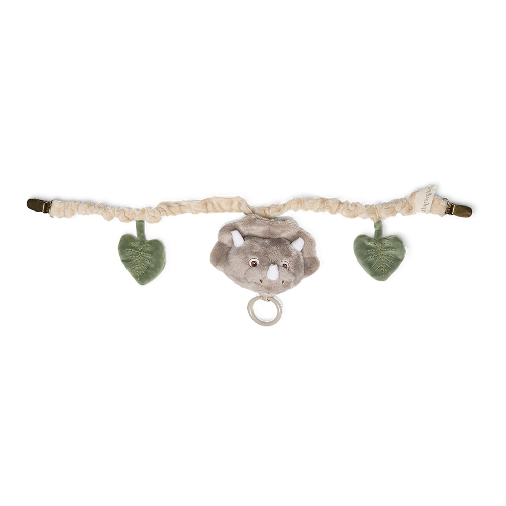 Leah aktivitetskæde er sød og perfekt for et barn at kigge på lege med. Kæden er elastisk, så du kan få den perfekte længde til barnevognen. Aktivitetskæden sættes fast til barnevognen med metal klips i hver side. Den kommer i bløde teksturer, med et spej