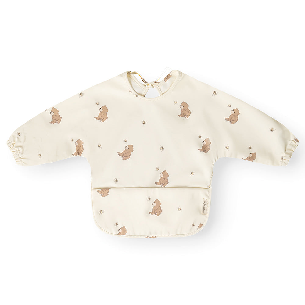 Lækkert forklæde til de små. Beskytter tøjet mod pletter og er lavet i en lækker blød genanvendt polyester. Den bindes nemt i nakken med to snore.