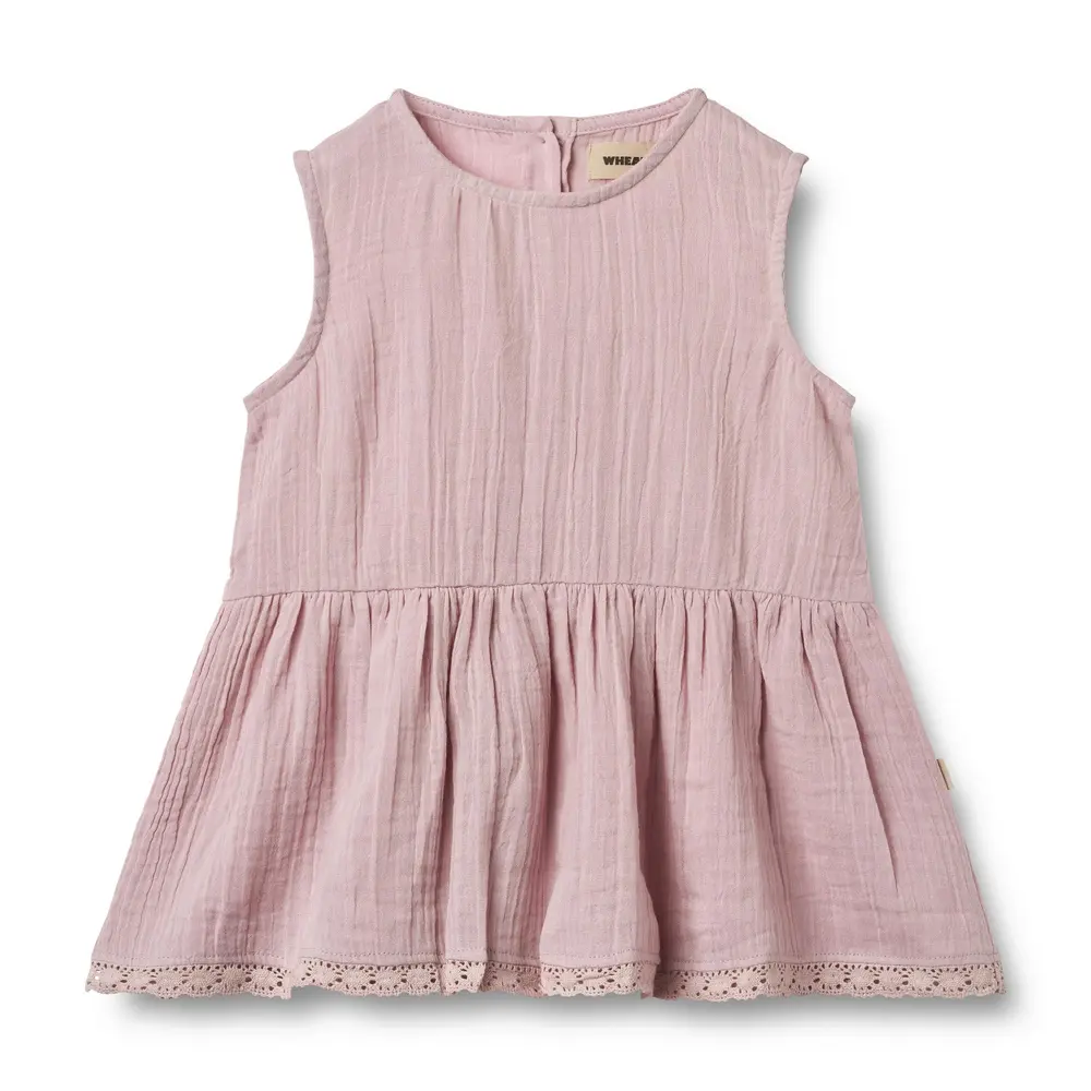 (Indeholder reklamelinks). Smuk ærmeløs top i vævet økologisk bomuld til børn.