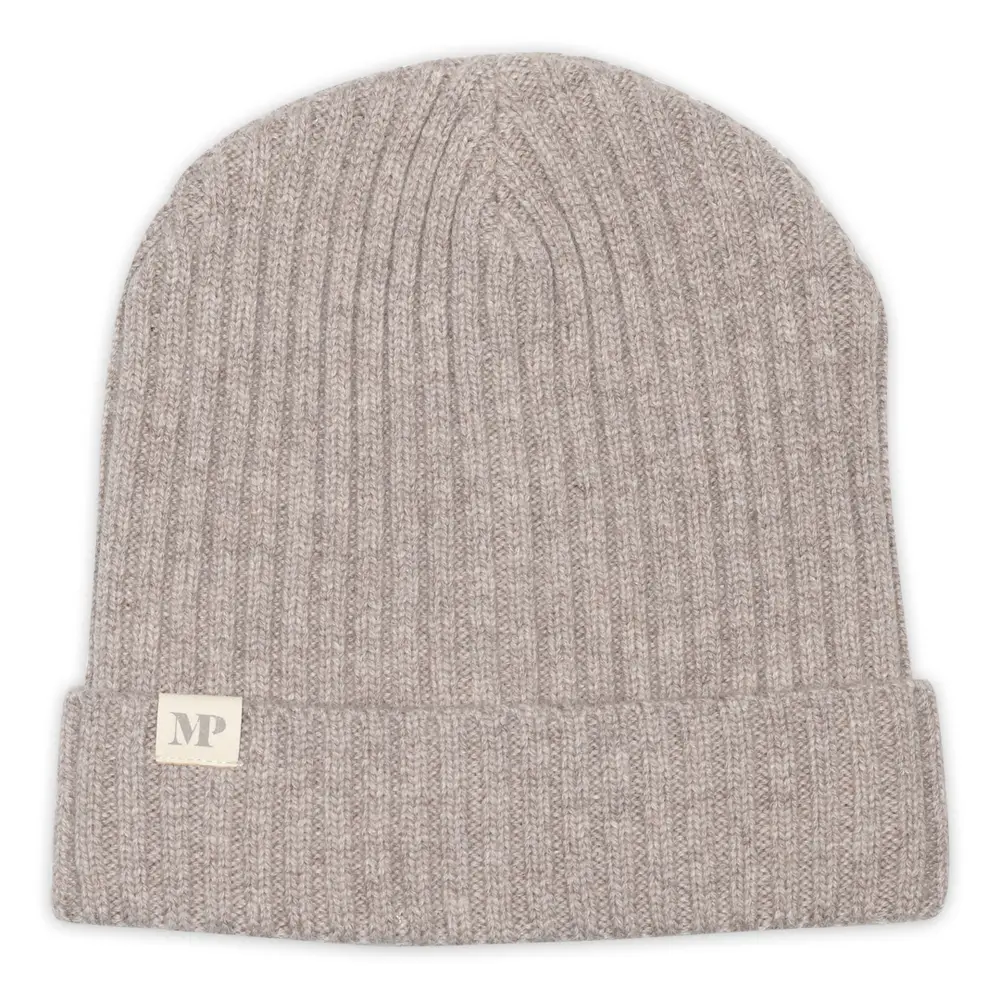 Beanie med foldekant fra MPkids. Huen er strikket i en bred ribstruktur, og har en dekorativ foldekant.