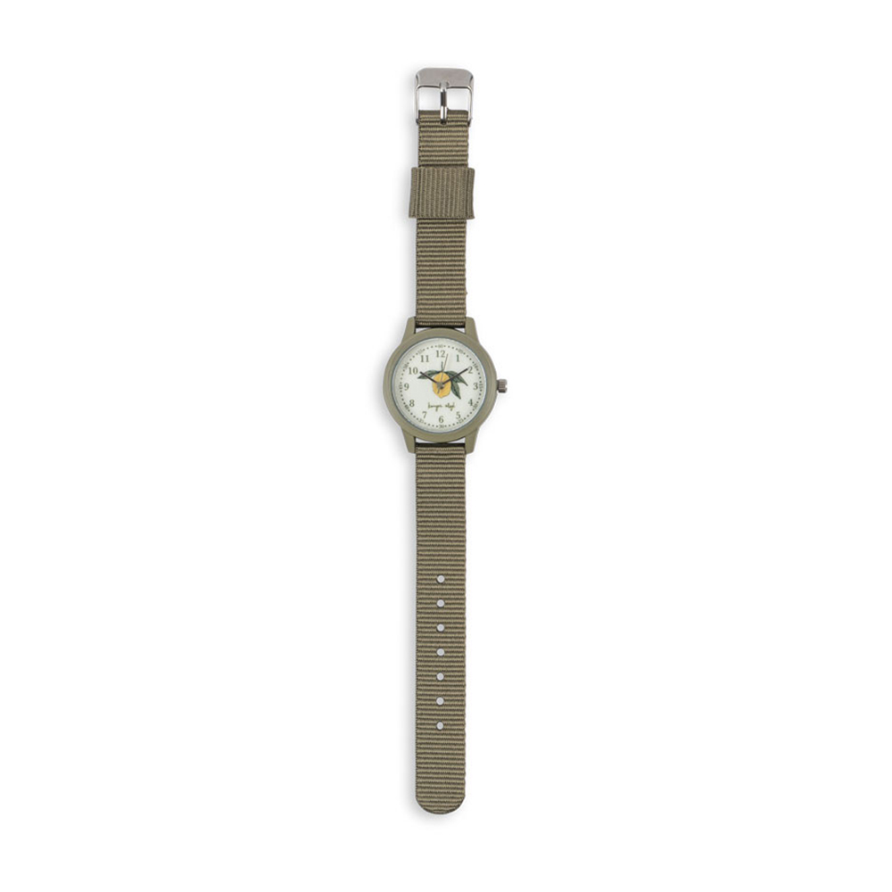 Ur (One size) Nyt børneur fra Konges Sløjd, hvor det er nemt at lære klokken. Timetallene og 5-minuttersintervallerne er markeret, og resten er markeret med prikker. Uret er designet med tre-viser-urværk, blød stofrem og justerbart spænde i stål. Velegnet