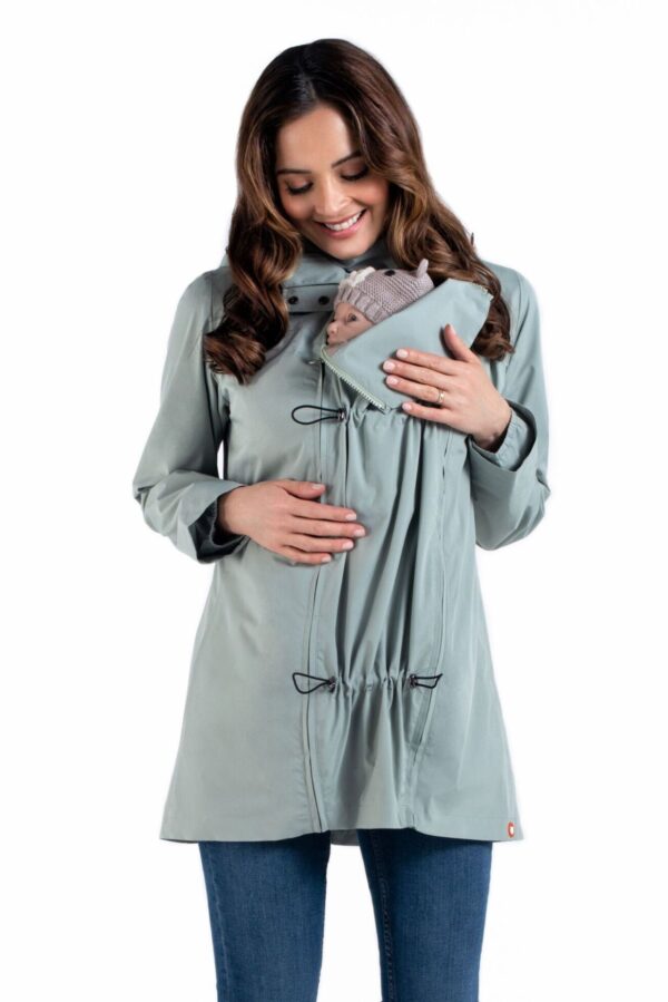 Jakken har 4 forskellige anvendelses muligheder: Graviditet, Front babybæring, ryg babybærin eller normalt bru