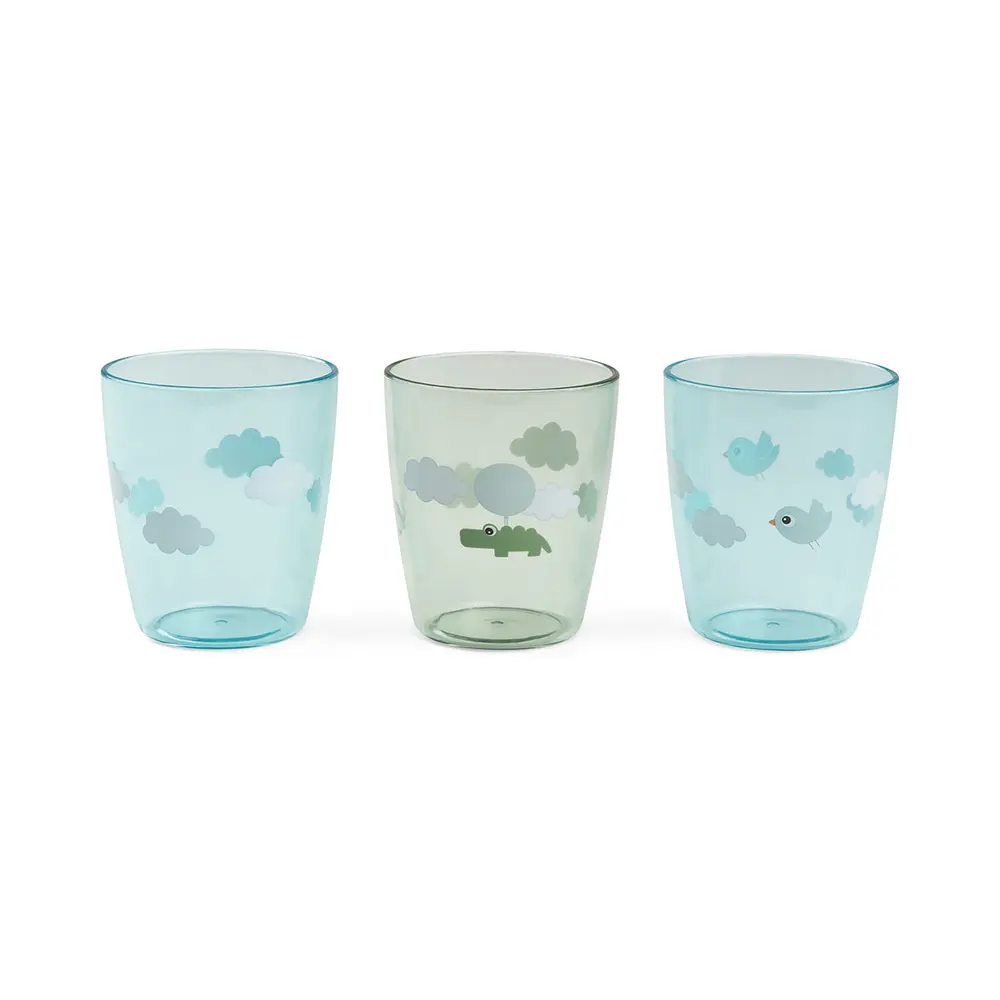 Yummy mini-glasset er perfekt til små hænder. Når glasset fyldes, vil børnene finde det sjovt at se, hvordan det regner fra skyerne. Med tre drikkeglas i sættet er der altid et glas klar til dagens måltider. Glasset er transparent, og gennem den klare kop